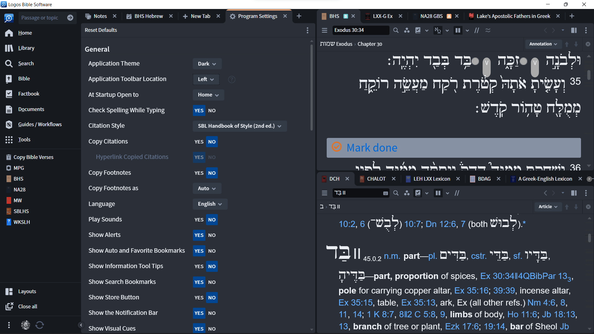 For years, Logos has made certain things incredibly easy. But if you rely on that “making things easy” for help identifying vocabulary or morphology from Scripture’s original languages, you’re ultimately making it harder on yourself to read those languages independently of the software. That’s why it’s important that Logos 10 continues to allow you to disable the “tool tips” that instantly provide this information before you have to think about it.